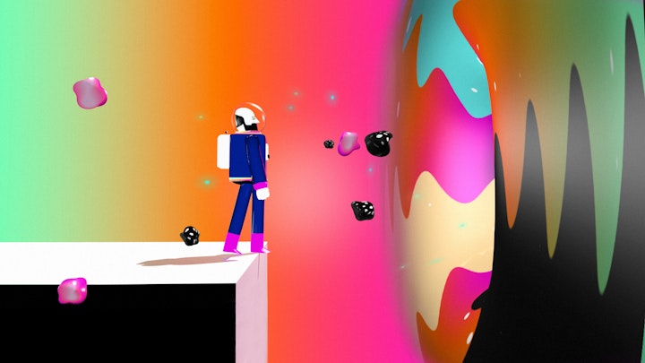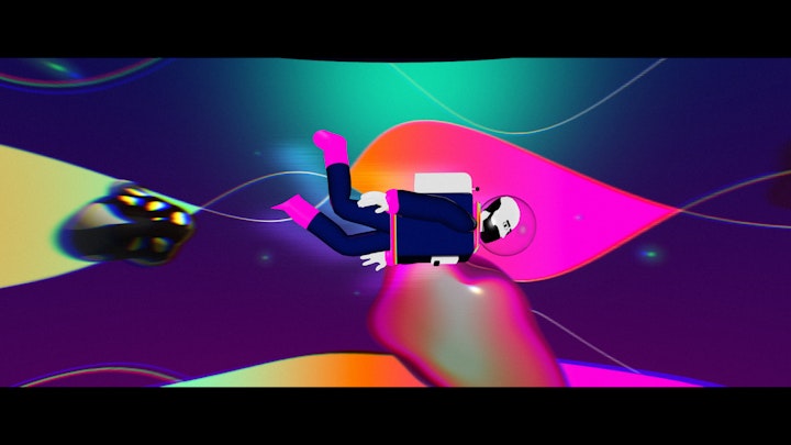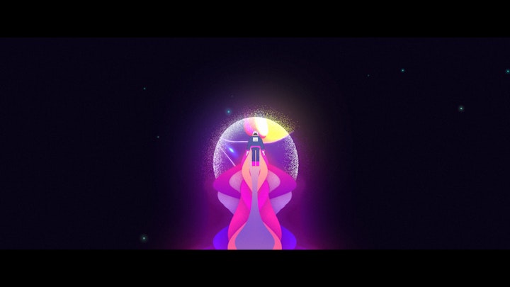 A psychedelic technicolor Animation, that follows the journey of an adventurous astronaut as he traverses a wormhole from one dimension to another.